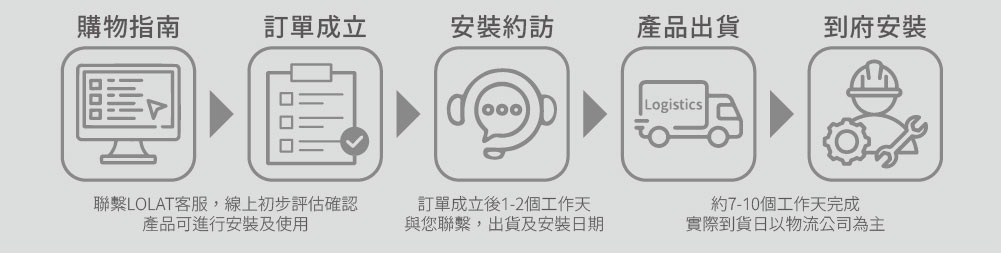 - 配送至安裝完成約需7-10個工作天不含假日,實際狀況依照師傅排程為主。