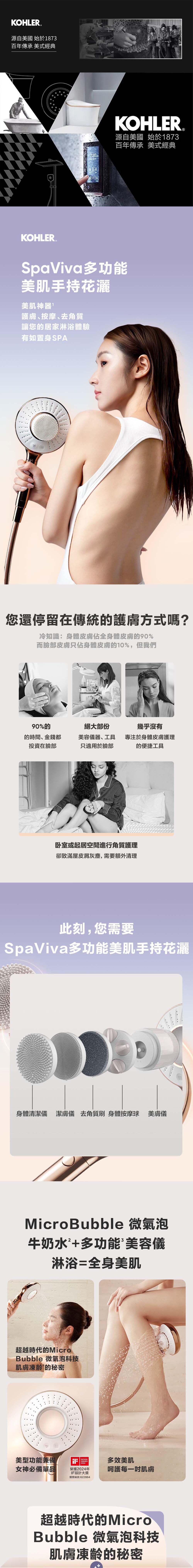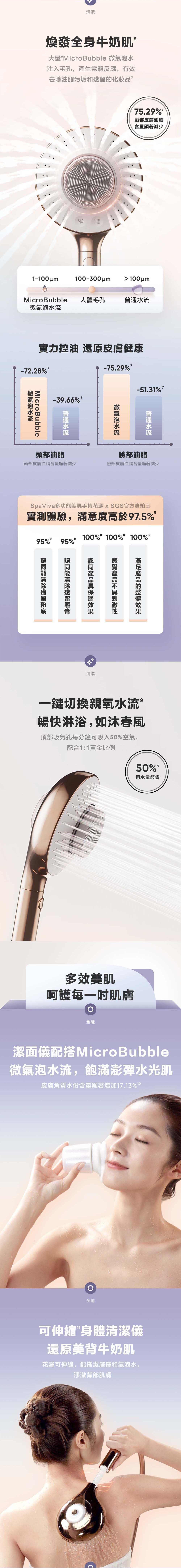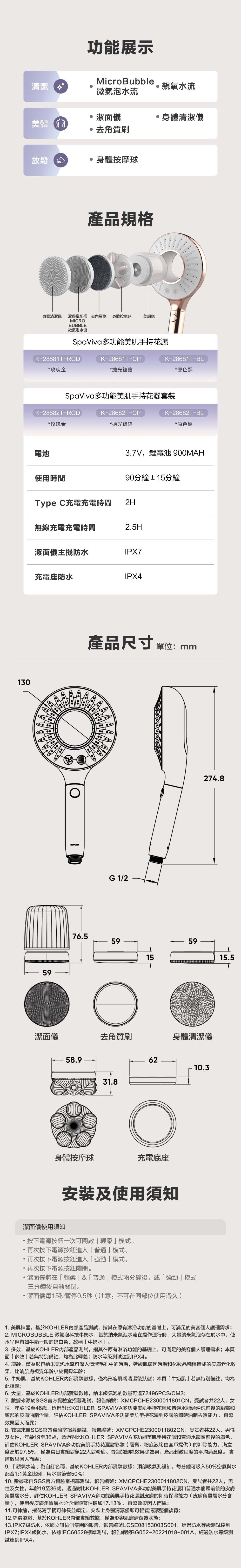 1、Spaviva多功能美肌手持花灑CP色(內含潔面儀、去角質刷、身體按摩球、身體清潔儀、充電線、充電底座)