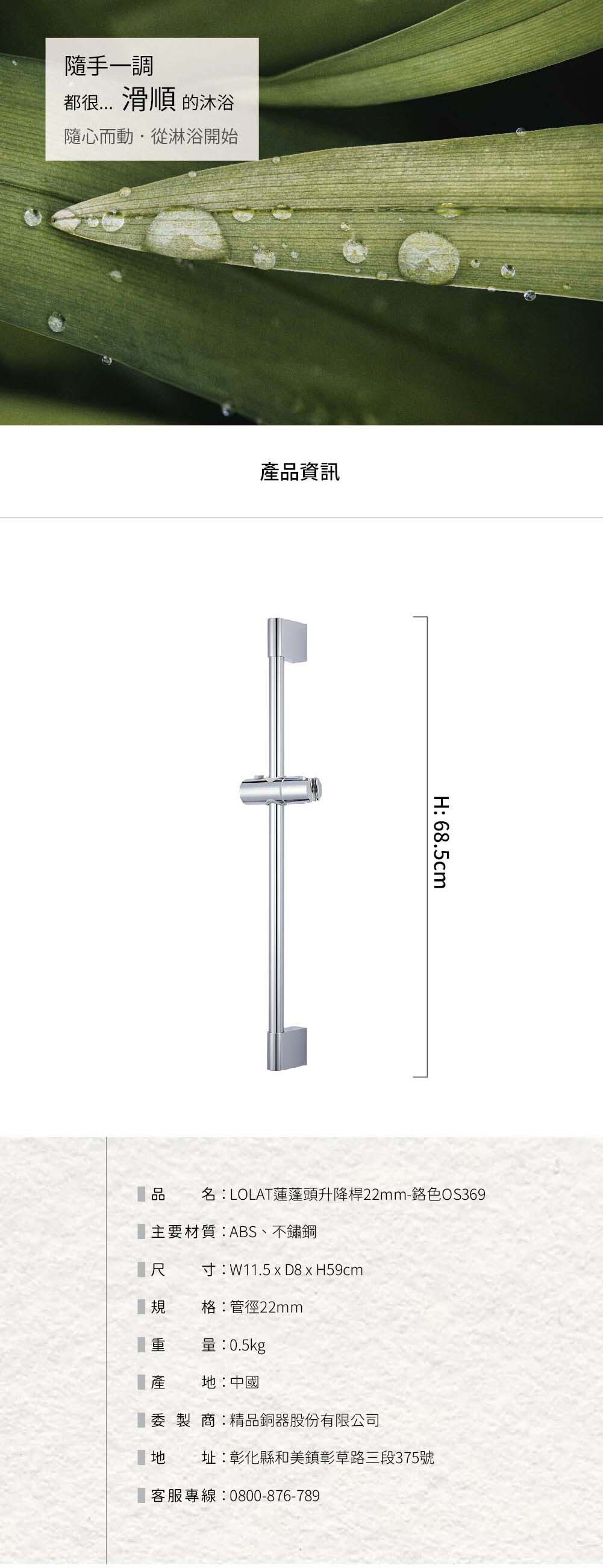 LOLAT蓮蓬頭升降桿22mm-鉻色OS369(可加購皂盤)