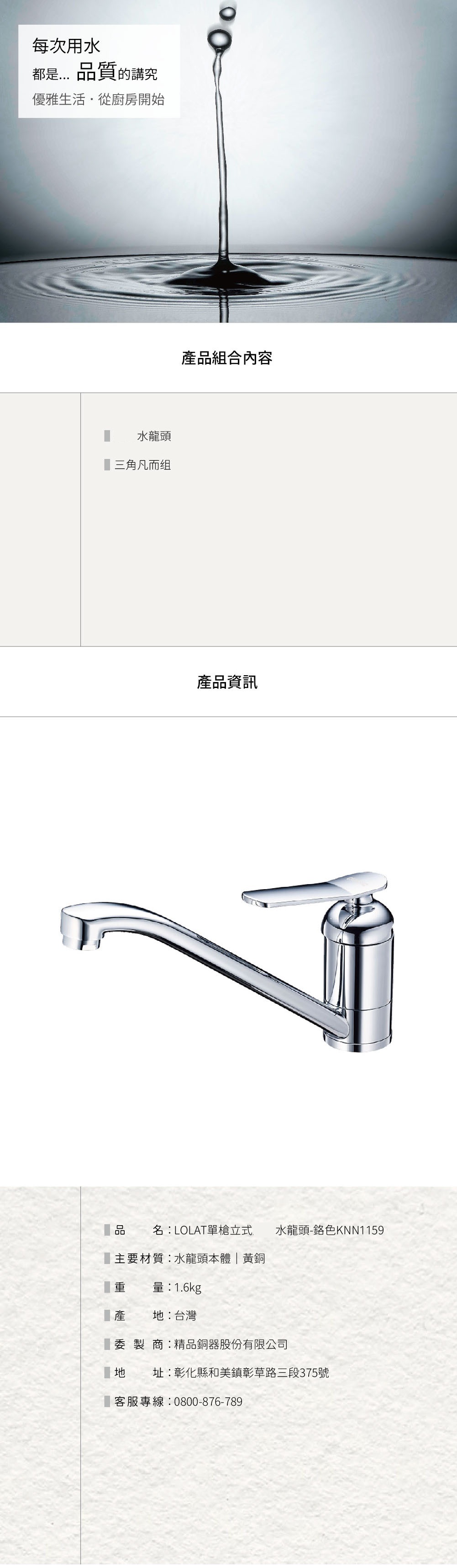 LOLAT單槍立式水龍頭-鉻色KNN1159