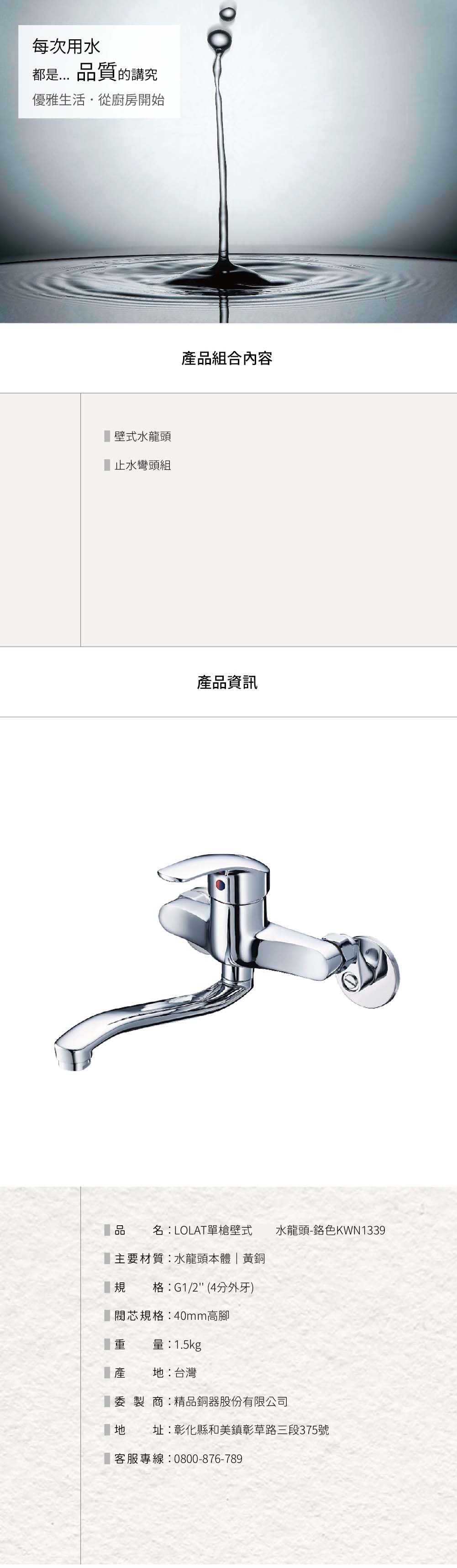 LOLAT單槍壁式水龍頭-鉻色KWN1339