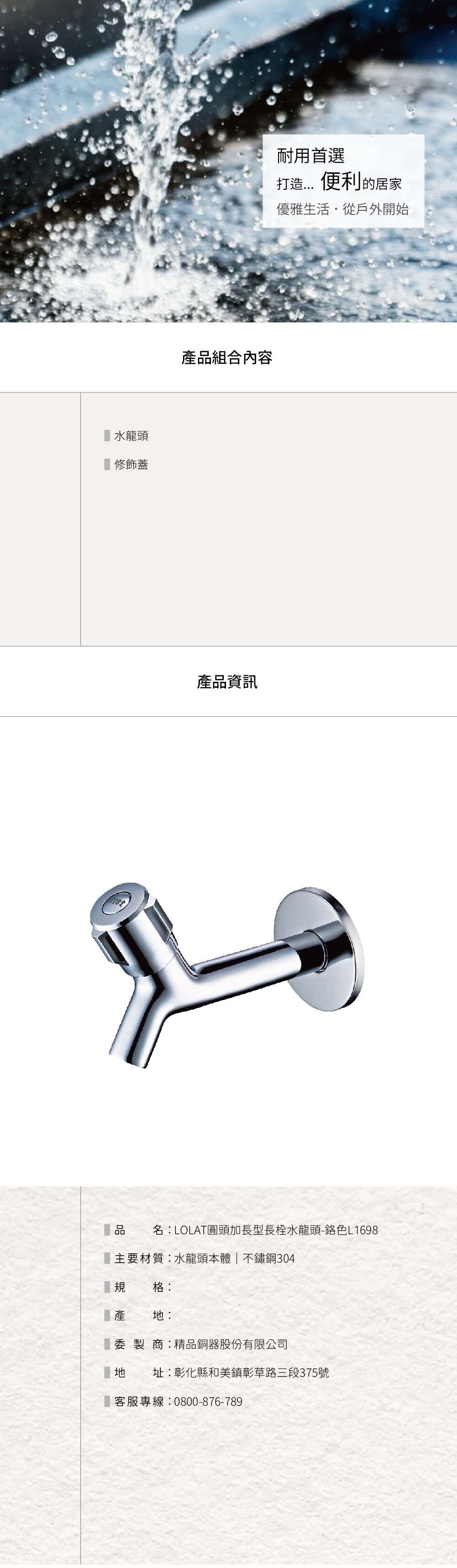 LOLAT圓頭加長型長栓水龍頭-鉻色L1698