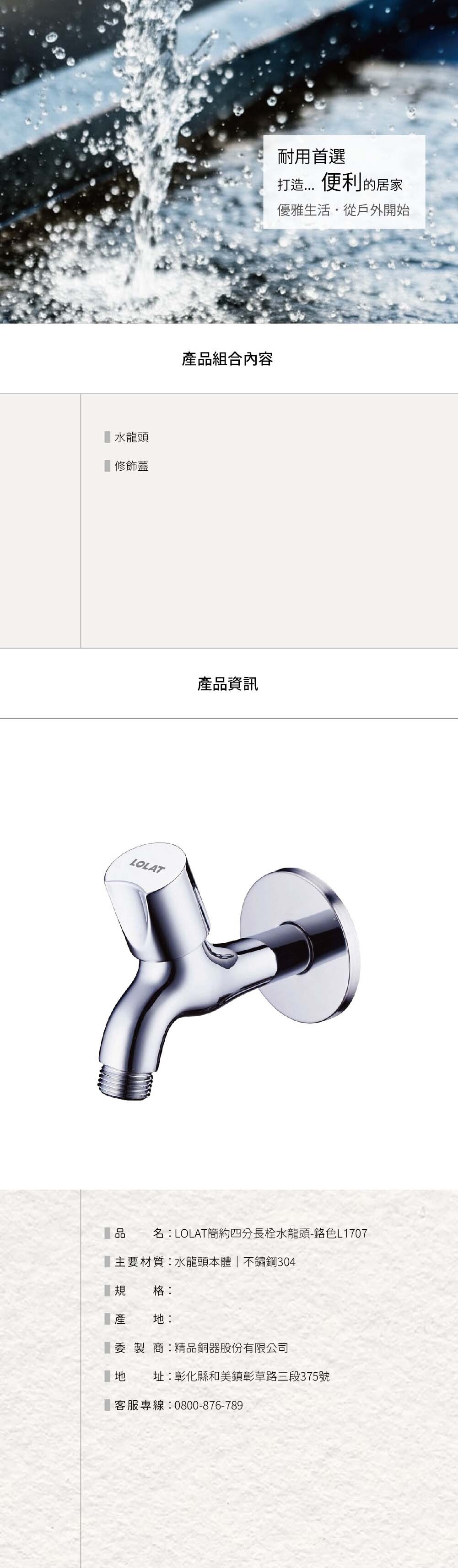 LOLAT簡約四分長栓水龍頭-鉻色L1707