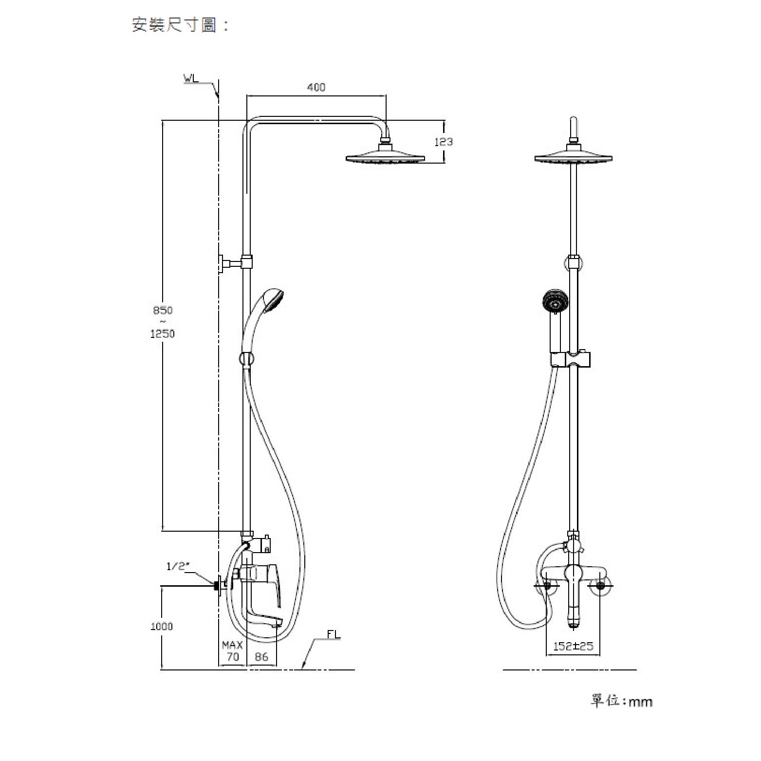 •沉浸式SPA體驗:雨淋花灑x多功能蓮蓬頭。