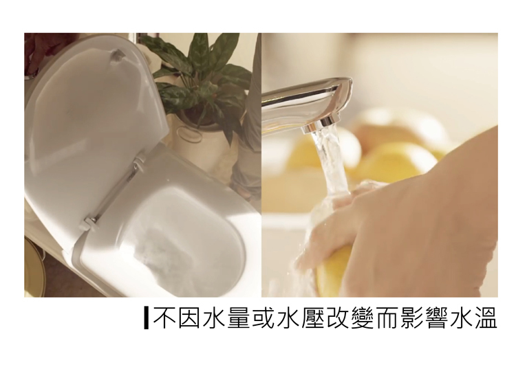 •智能恆溫,不因水壓忽冷忽熱。