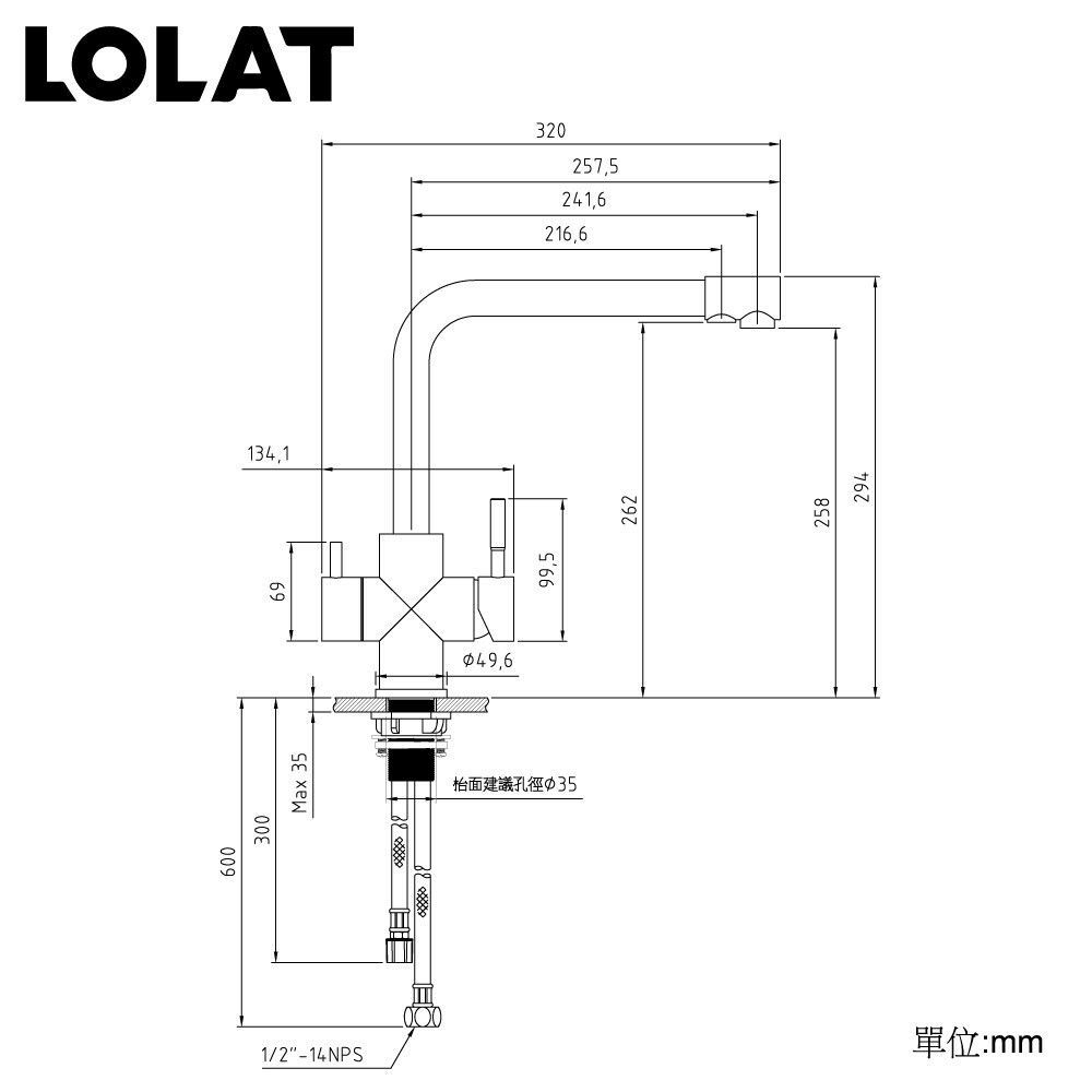 •冷熱自來水+RO水道。