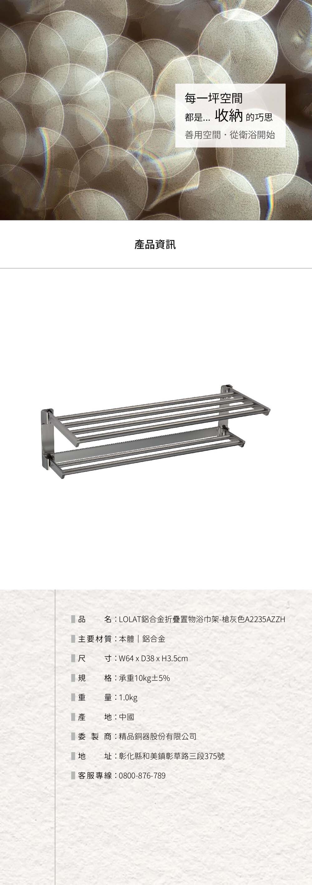【Bird_CP】LOLAT鋁合金摺疊置物浴巾架-槍灰色A2235AZZH